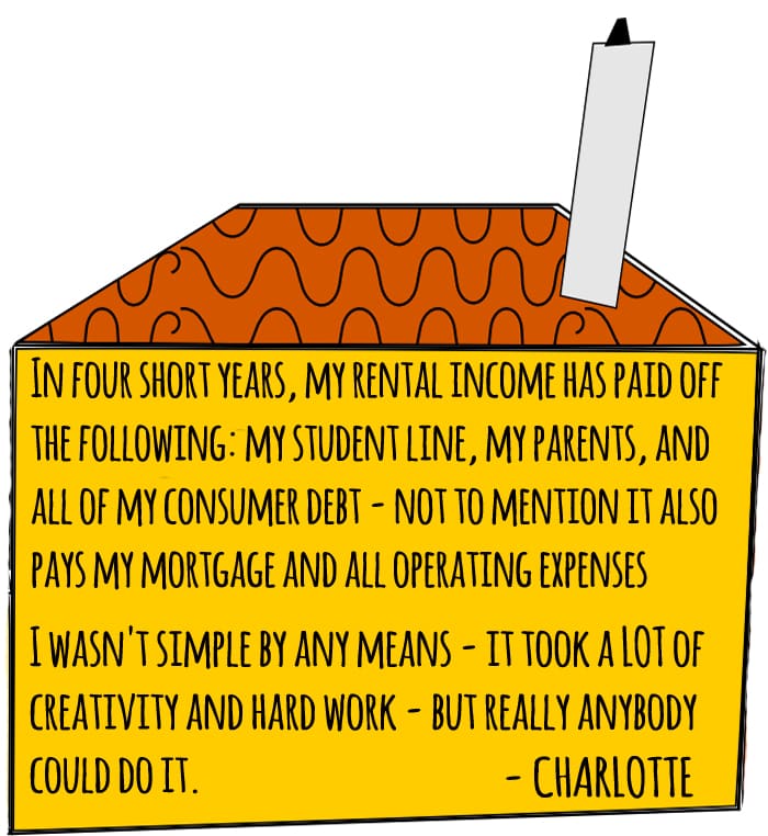 In four short years, my rental income has paid off the following: my student line, my parents, and all of my consumer debt – not to mention it also pays my mortgage and all operating expenses (property tax, house insurance, utilities, maintenance and updates, etc.)
