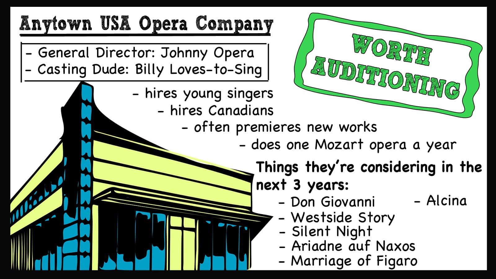 It’s your job to know the market. Which companies like to hire young singers? Or for the Canadians… which US companies like to hire Canadians? Look at colleagues with similar products to you… where are they working? For performers: what shows are companies doing in the next 3 years? Some of that information is public, and some you might have to dig for…. But lots of people know ahead of time. The more you can know, the better position you can place yourself in.